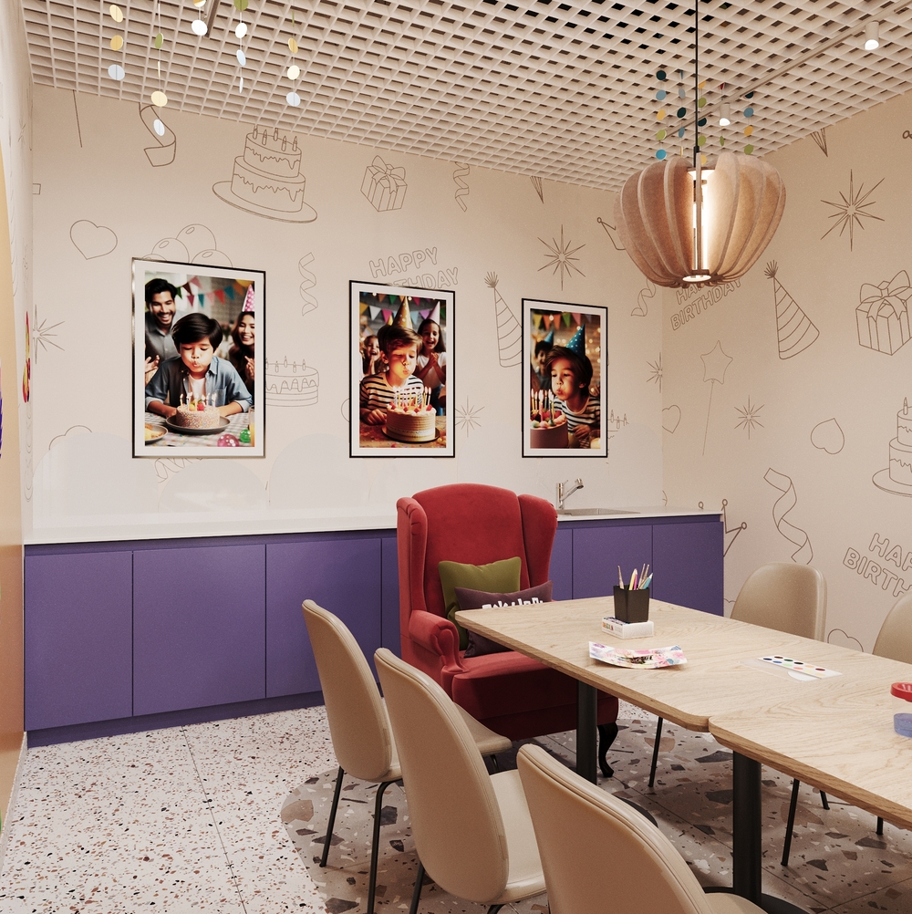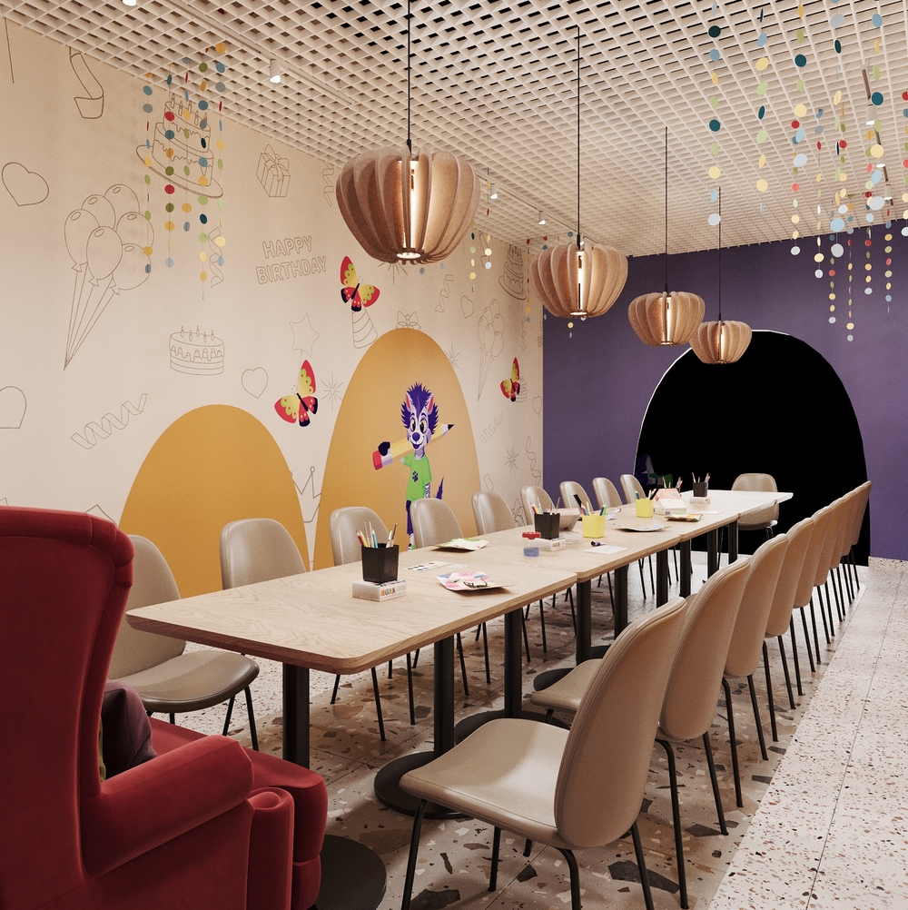 Дизайном нашего детского кафе занималась компания Альтернатива, очень понравился результат их работы. К своим поставленным задачам отнеслись индивидуально и и по-творчески. Были учтены все наши пожелания относительно размещения мебели и при этом хорошо было продумано все остальное. По поводу цветов и фактур хочется сказать отдельное спасибо, все получилось ярко, красиво, комфортно, детям точно будет здесь интересно проводить время. Наши ожидания полностью оправданы.